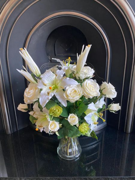 Large Bouquet Of Flowers In Vase / Blush Faux Flower Bouquet Large Arrangement Recycled Glass Vase : Get a large wicker basket, floarl foam for the base and spring choose the right flowers in colors and sizes and some greenery that will surround them and add the contrast.